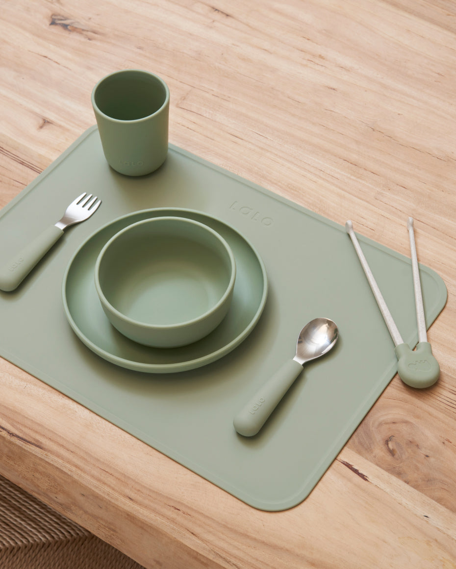 fourchette, vaisselle, manger, essentiels pour tout-petits, vaisselle, silicone, ensembles d'alimentation, coffrets cadeaux, silicone, repas, alimentation, repas incontournables, repas incontournables, bouchées plus grosses, grosses bouchées, vaisselle, ensemble de salle à manger, vert, jaune, rose bleu