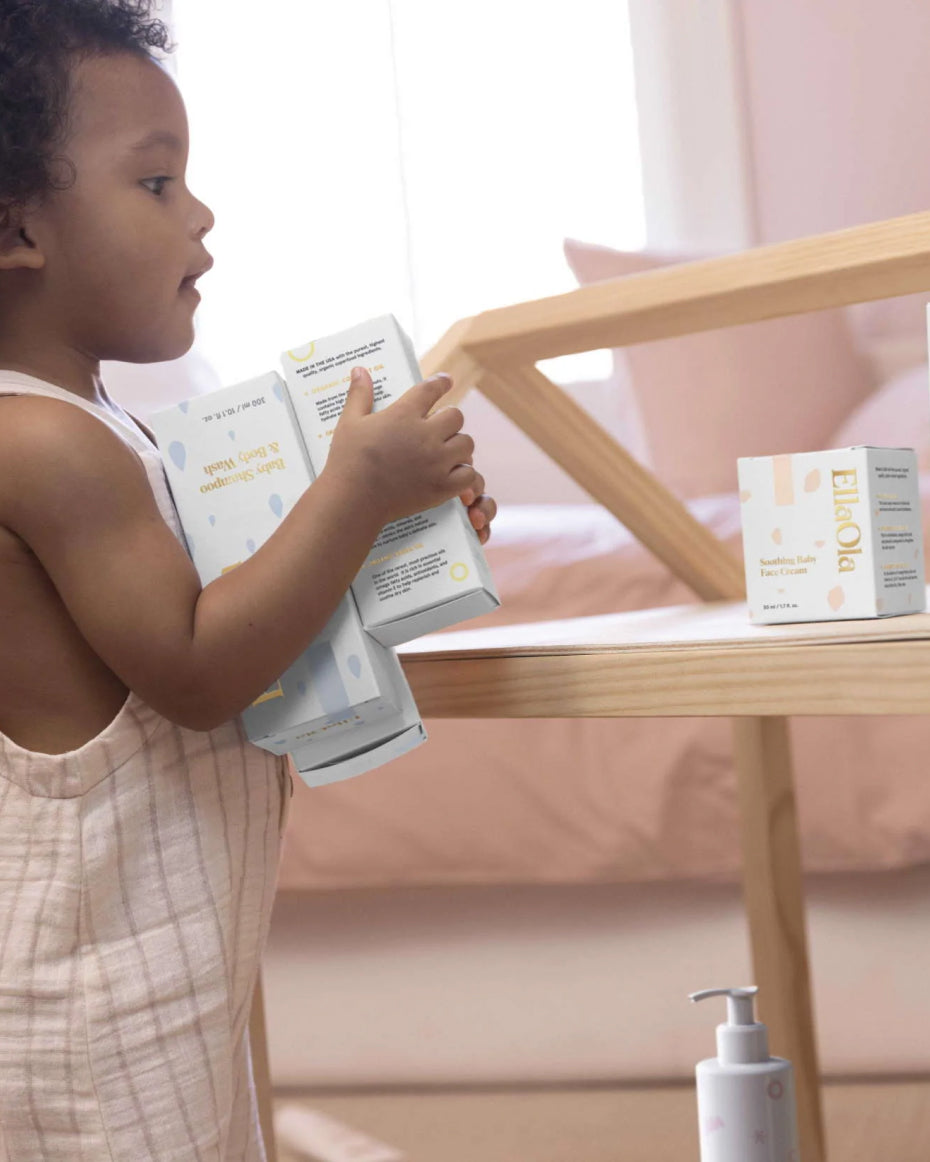 Soothing Baby Face Cream: Water (Aqua), Simmondsia Chinensis (Jojoba) Seed Oil, Glycerin, Cocos Nucifera (Coconut) Oil, Squalane, Cetearyl Alcohol, Butyrospermum Parkii (Shea) Butter, Caprylic/Capric Triglyceride, Dimethicone, Glyceryl Stearate, Glyceryl Stearate Citrate, Glyceryl Caprylate, Laminaria Ochroleuca Extract, Kappaphycus Alvarezii Extract, Vitis Vinifera (Grape) Seed Oil, Cocos Nucifera (Coconut) Water, Ceramide NP, Panthenol, Inulin, Helianthus Annuus (Sunflower) Seed Oil, Hydroxyethylcellulose, Caesalpinia Spinosa Fruit Extract, Trehalose, Maltodextrin, Cetearyl Glucoside, Sodium Phytate, Sodium Citrate, Potassium Cetyl Phosphate, Caprylhydroxamic Acid, Arginine, Carbomer, Sodium Hydroxide, Citric Acid