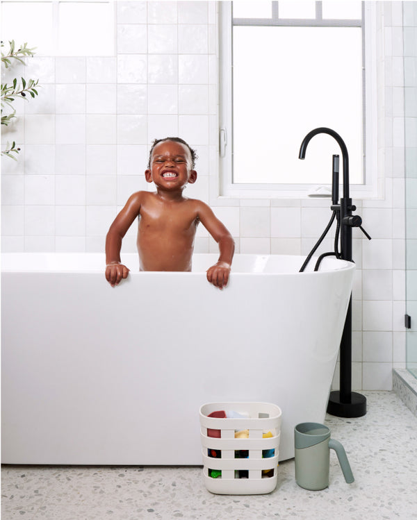 The Bathtime Full Kit keeps babies and toddlers happy and safe while they splash. The versatile Bath Tub, Rinse Cup, Spout Cover, and Bath Toy Bin keep your little one steady while their toys have a home (until next time).