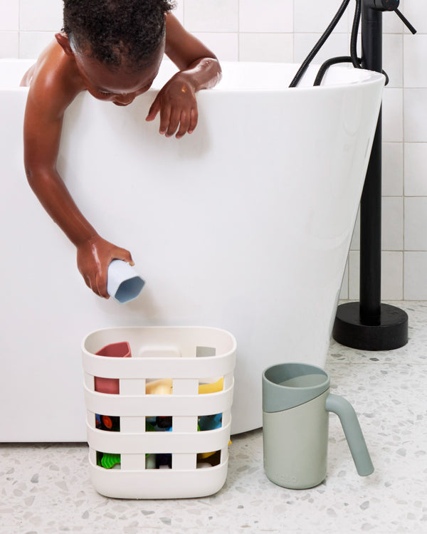 Bath Toy Bin’s woven design drains toys while they rest (before next time). It’s a scoopable, functional, and sleek bath essential adults will be proud to suction on display.