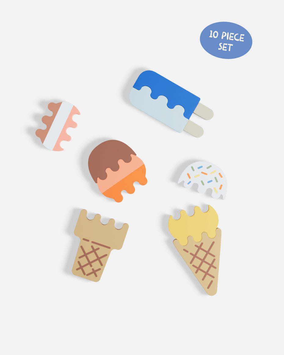 Dimensions: On the Road: Curved Track is 5.75 x 3.45 x 0.45 in; Ice Cream Parlor: Sugar Cone is 2.50 x 3.25 x 0.45 in: Tropical Island: Island is 6.75 x 5 x 0.45 in.