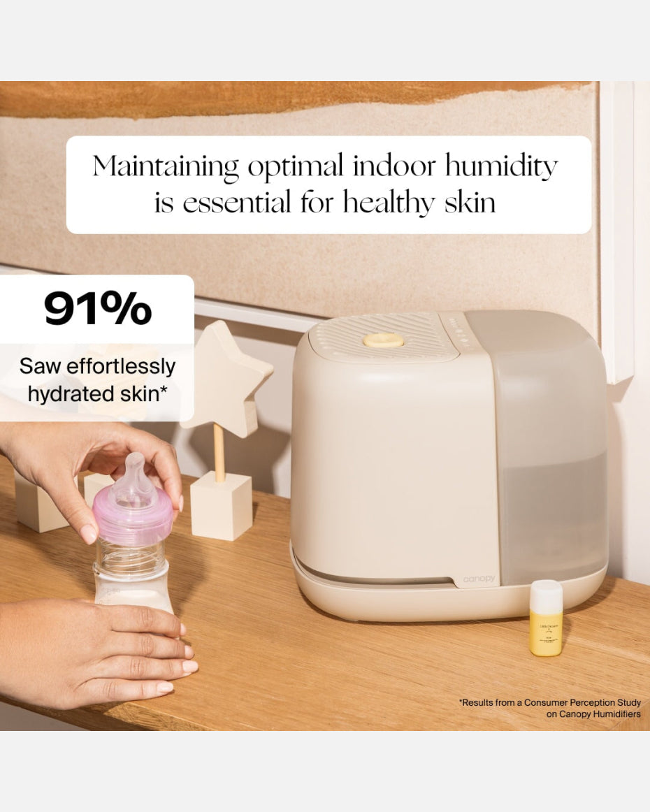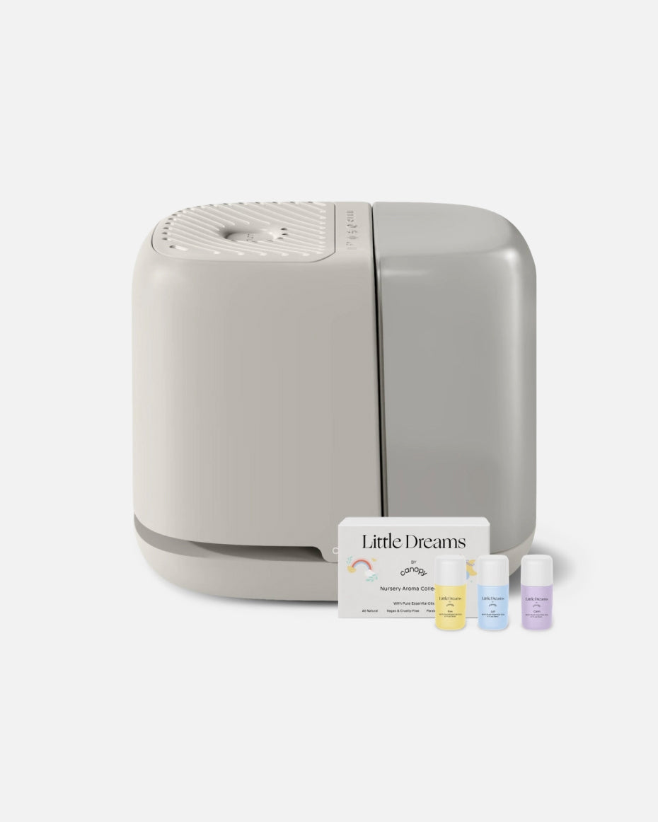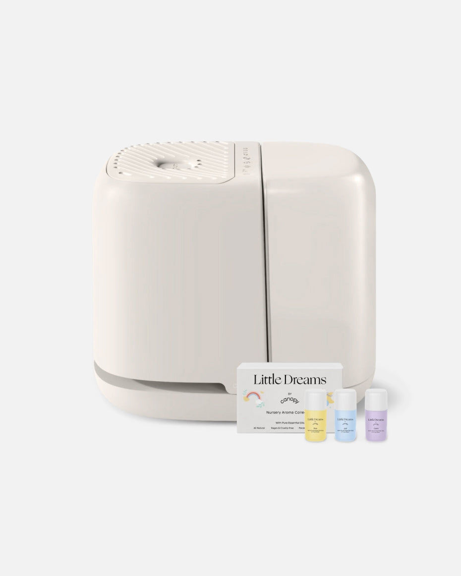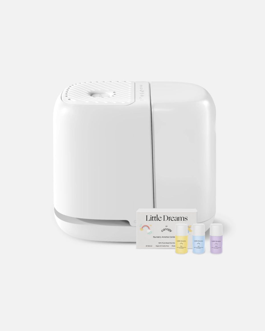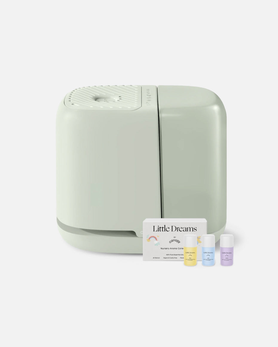 A completely reimagined humidifier from Canopy that is pediatrician recommended to promote easier breathing and better sleep for your baby. Includes the Little Dreams all-natural aroma kit for healthy hydration paired with soothing aroma diffusion.