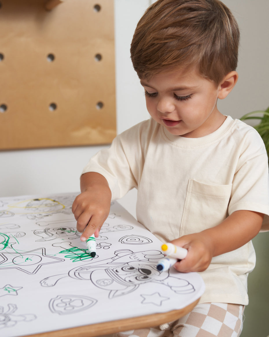 A table surface saver and mess-free art project all in one, featuring their fave PAW Patrol™ friends. Sized to perfectly cover the Play Table or spread out on any surface to give young artists extra room to create and watch their fave pups come to life.