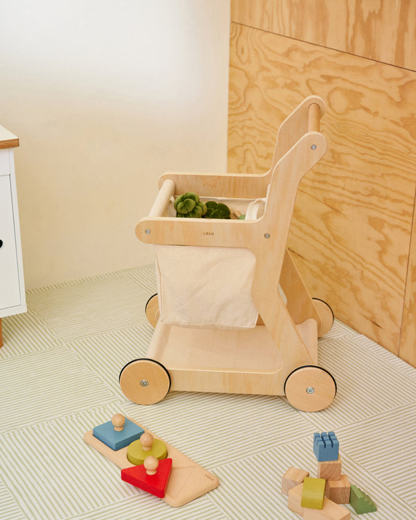 Because shopping frenzies are real. This cart is made from sturdy, non-toxic materials, and the anti-scuff rubber gaskets on its wheels protect the floor while your little one pushes it around the grocery store—ahem, your home.