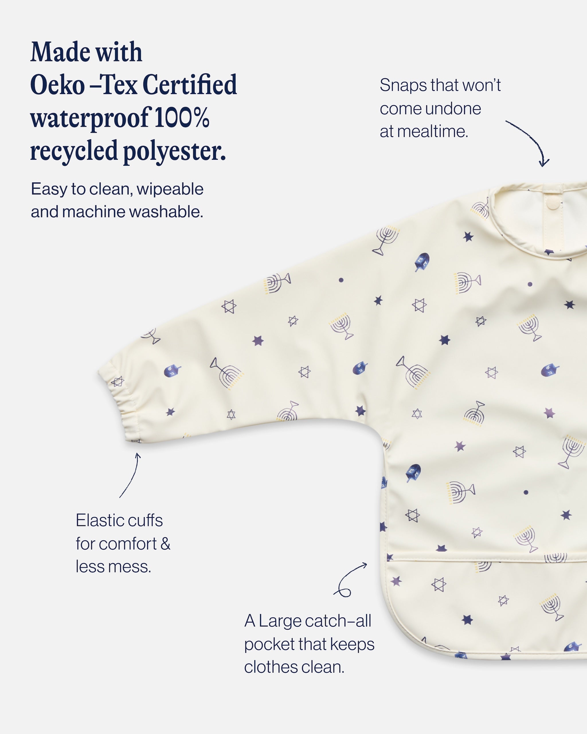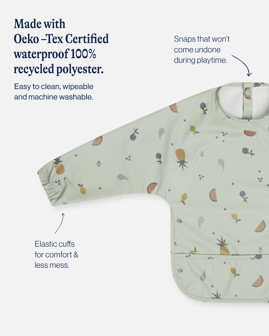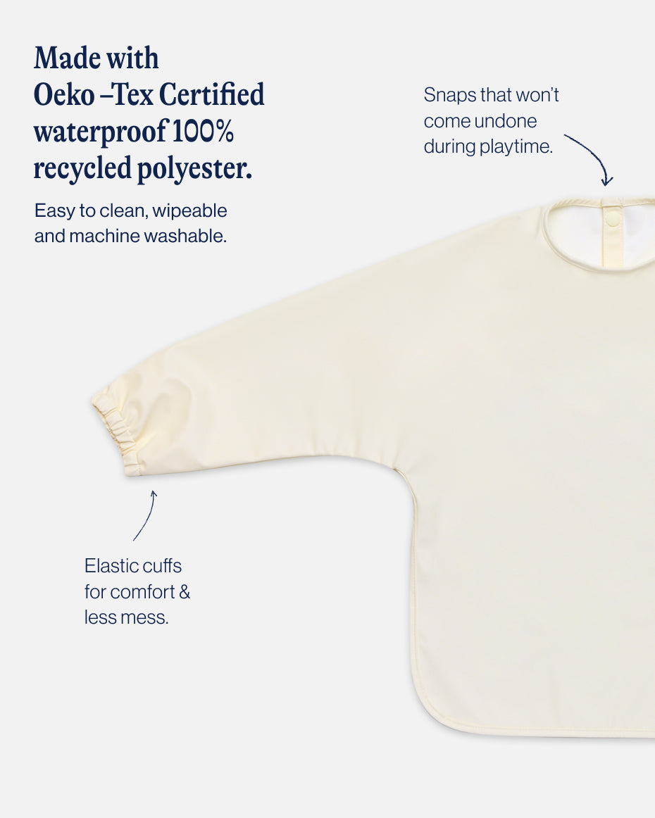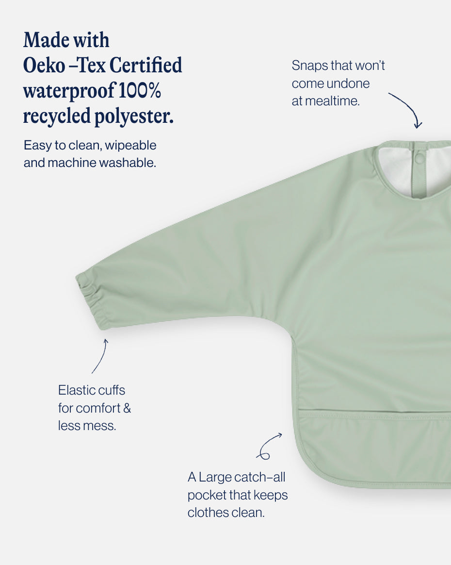From mealtime to playtime, the Smock Bib covers it all. Made with 100% waterproof materials that wipe clean or machine wash like new, you won’t want to make a mess without it. The adjustable fit grows with your child and makes a great gift.