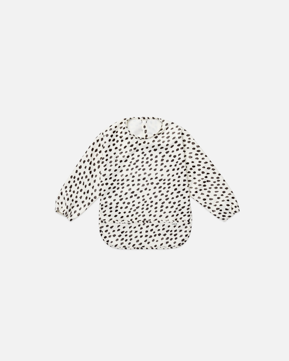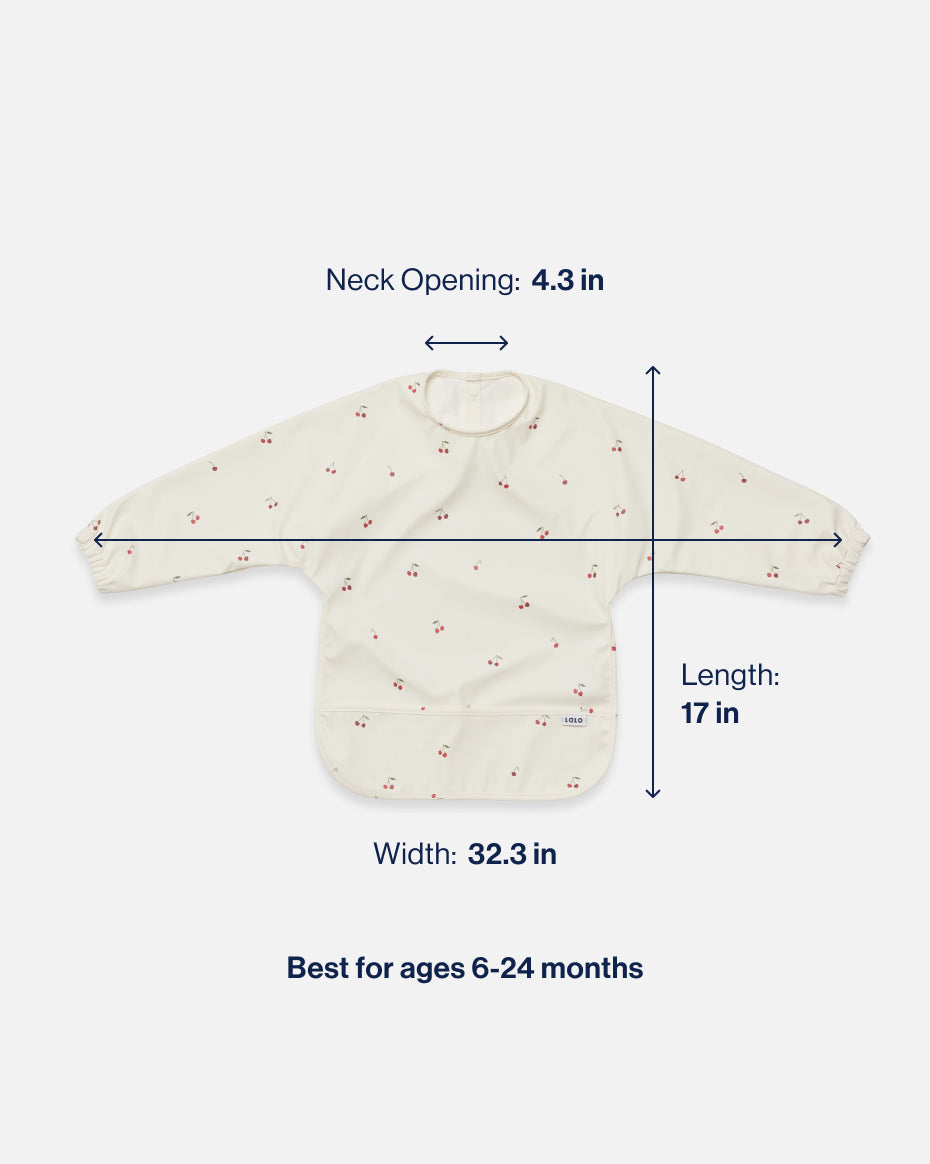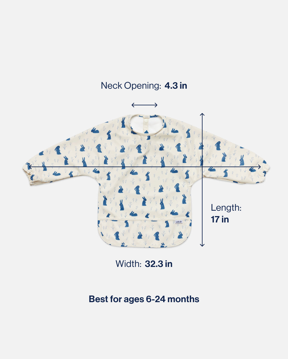 The Smock Bib is wipeable and machine washable! Simply wipe clean with a damp sponge and mild soap or machine wash on cold and air dry completely before storing. For best results, hang to dry, inside out after each use.