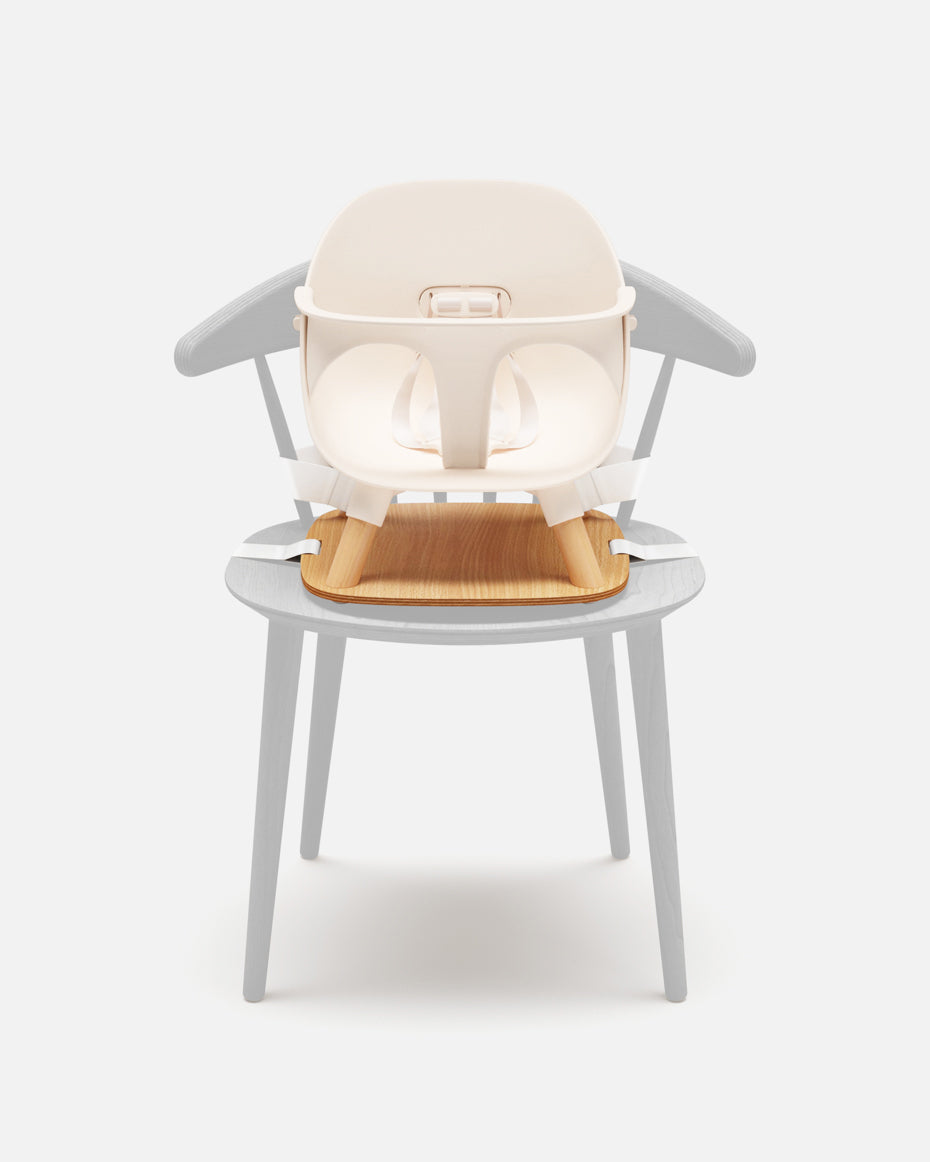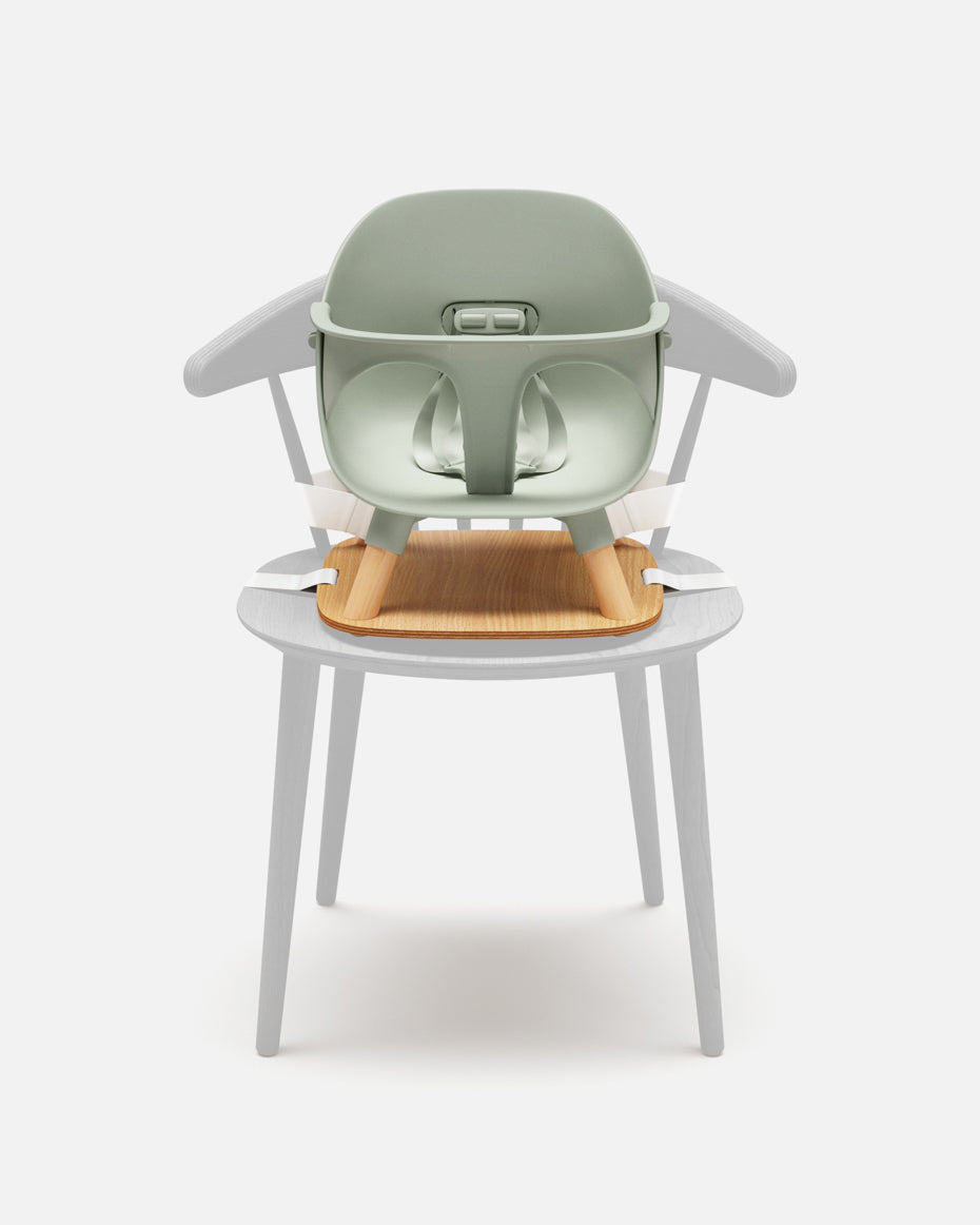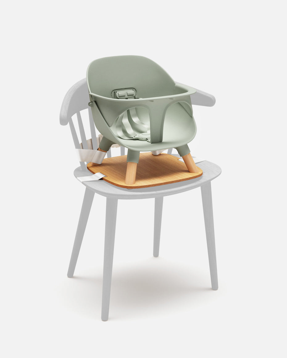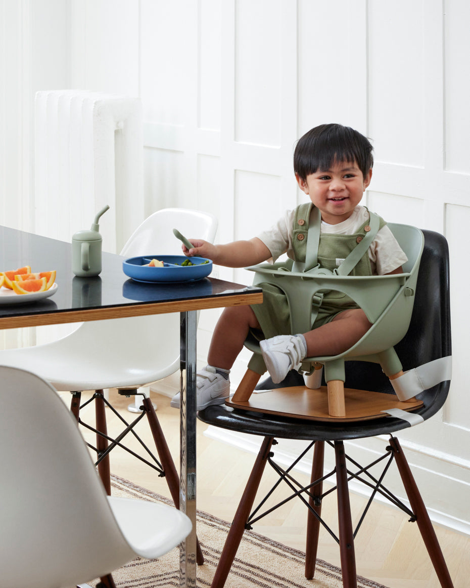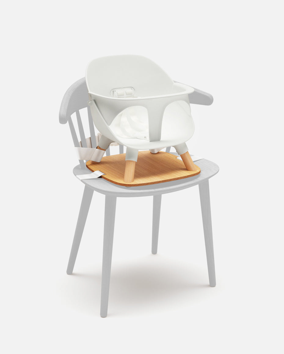 The best seat in any house. The Booster can be safely secured to most adult dining chairs. It’s perfect for small spaces and weekends at the grandparents’ house.