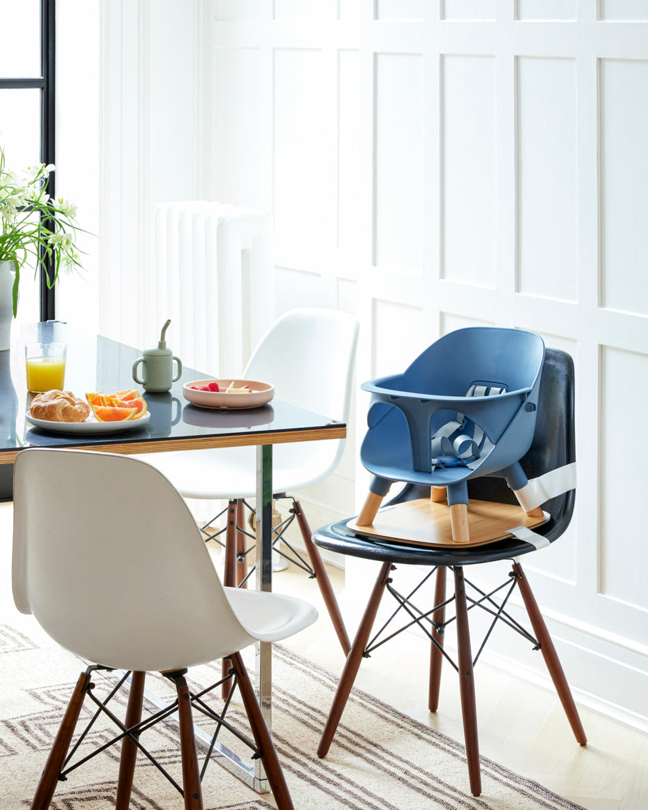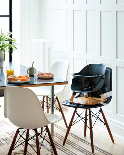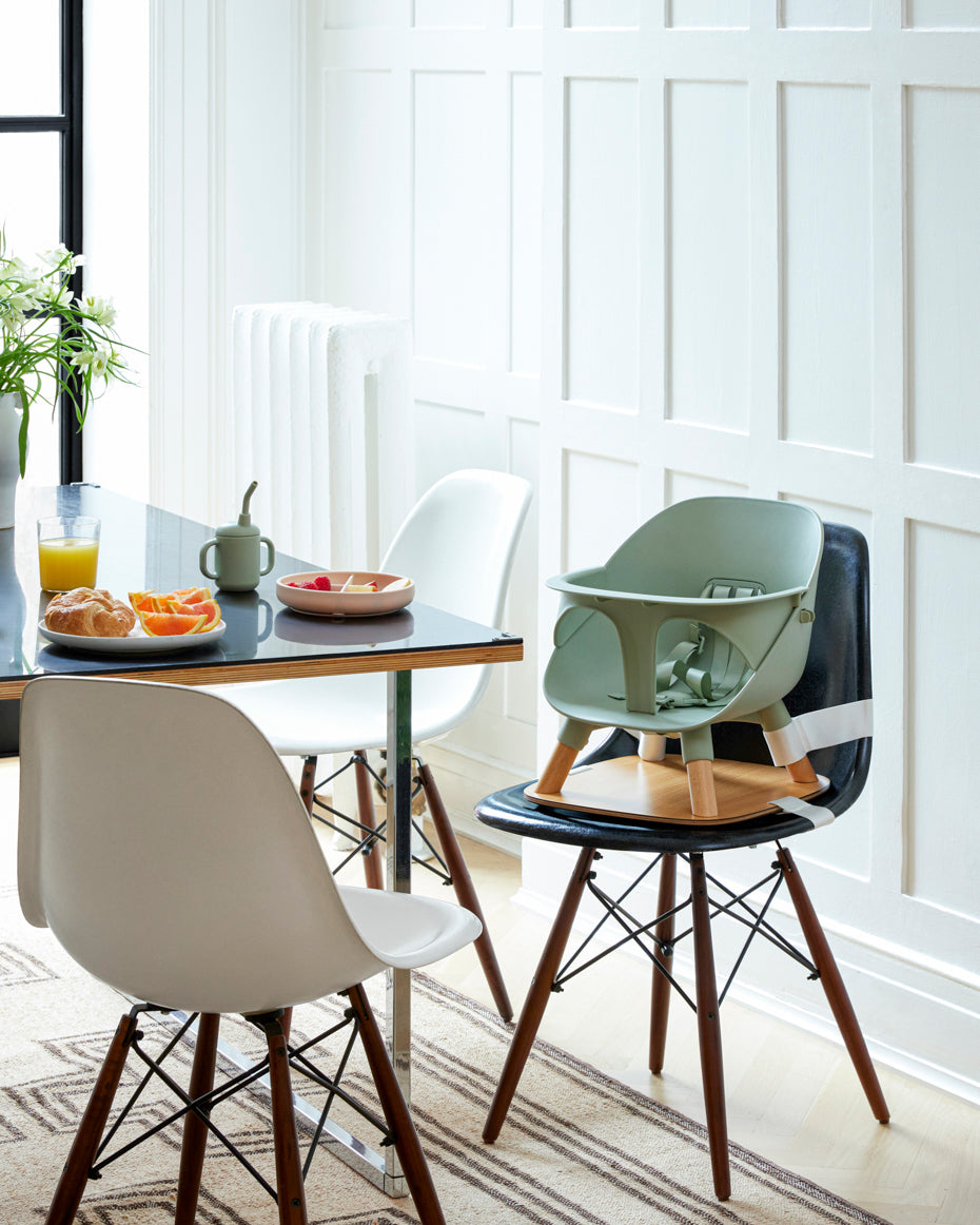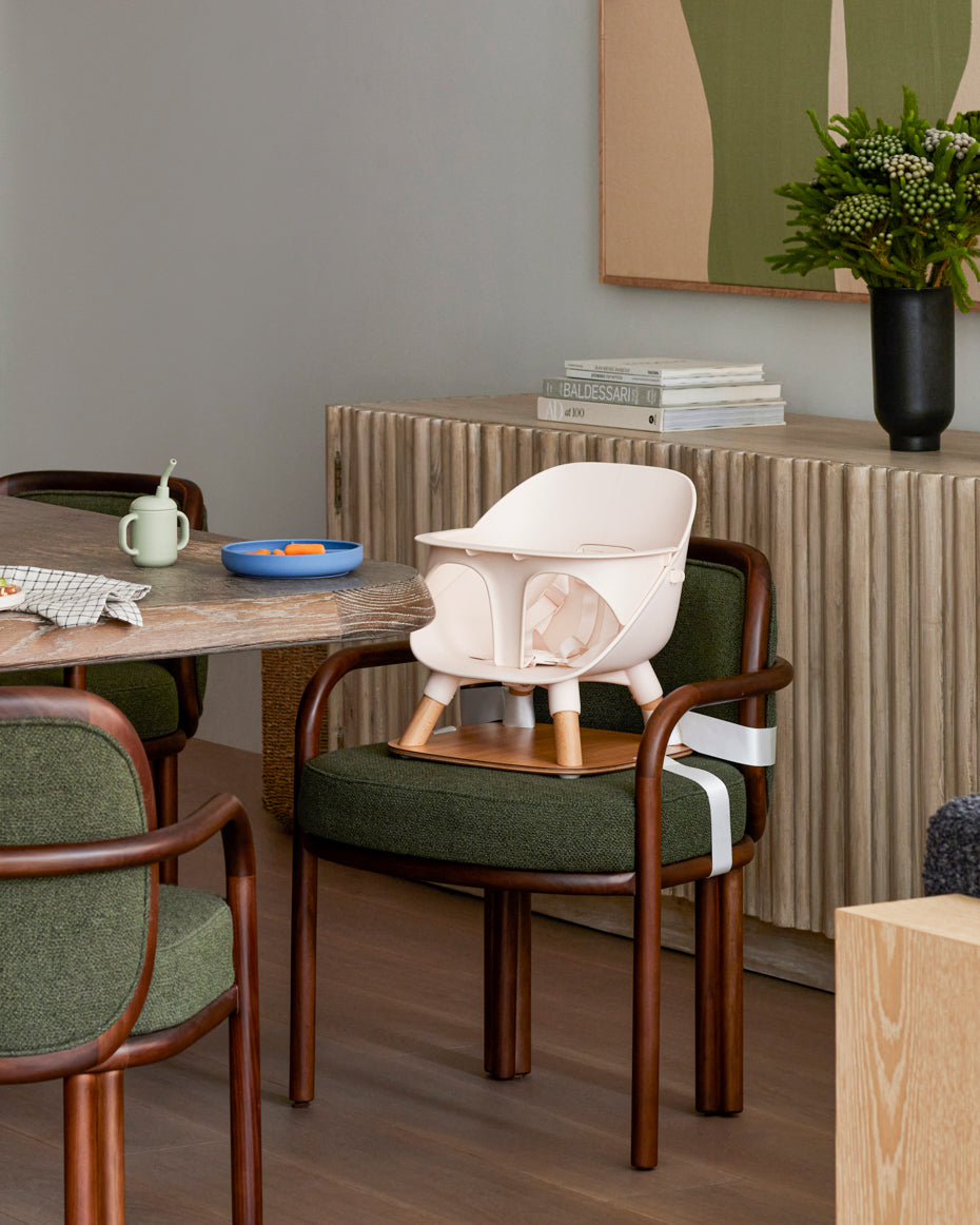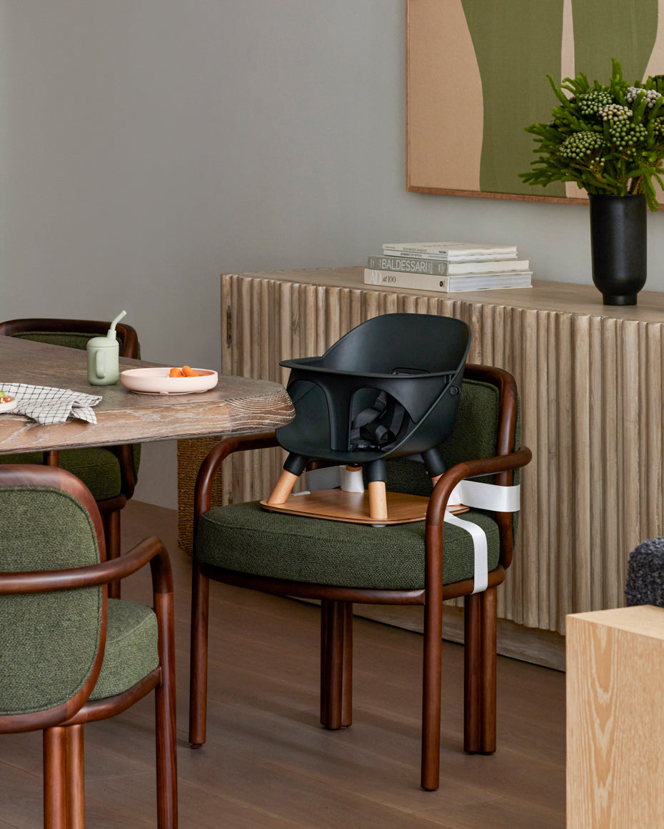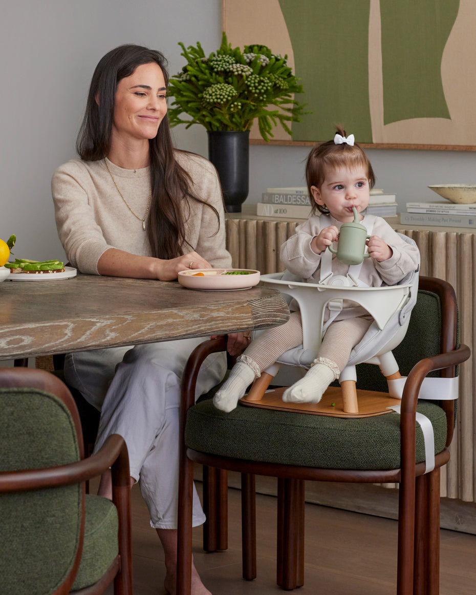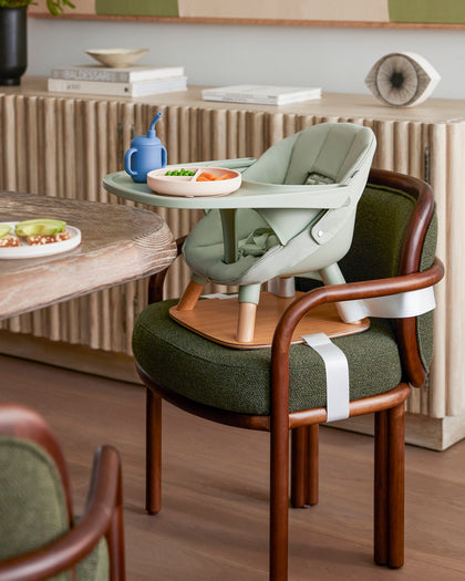 The best seat in any house. The Booster can be safely secured to most adult dining chairs. It’s perfect for small spaces and weekends at the grandparents’ house.