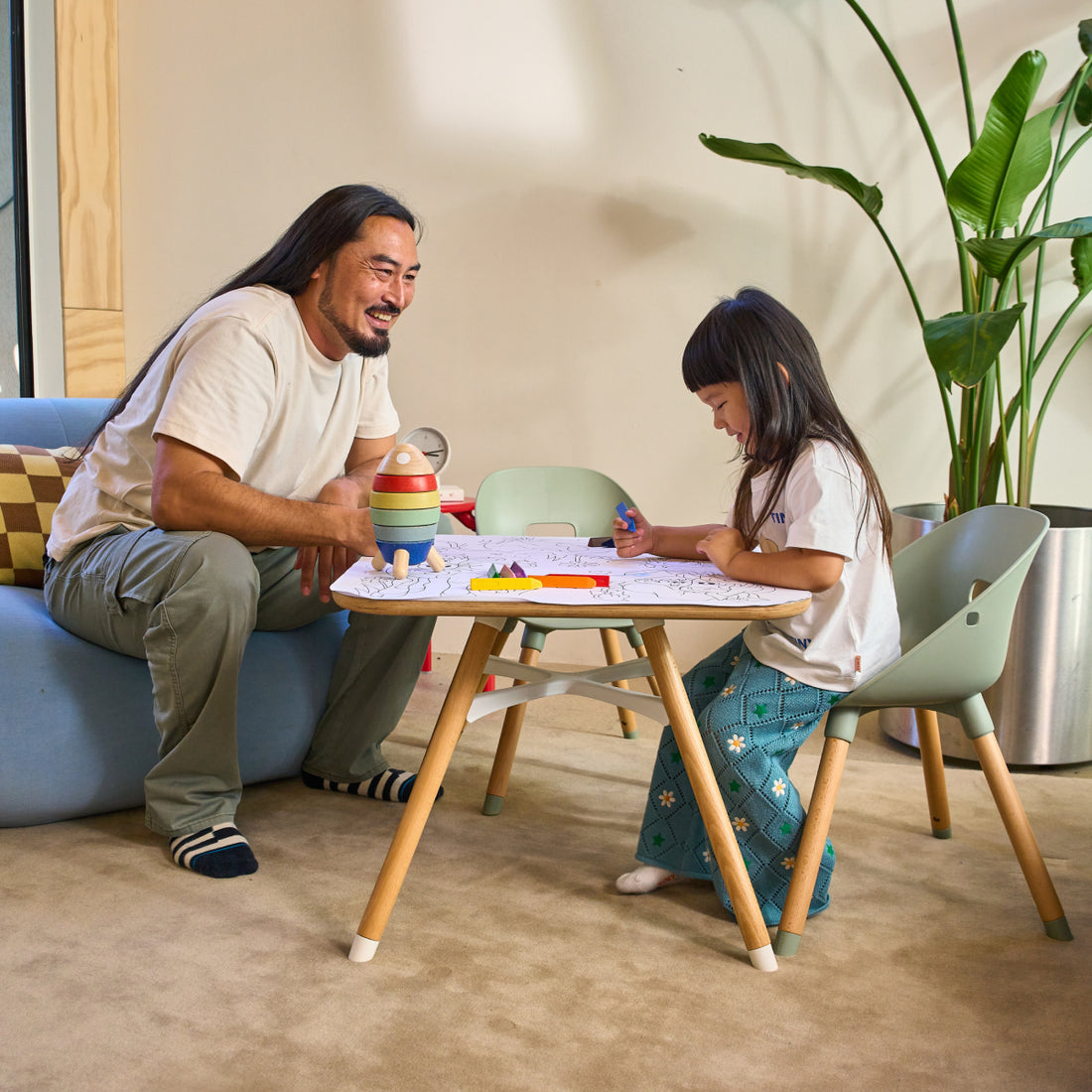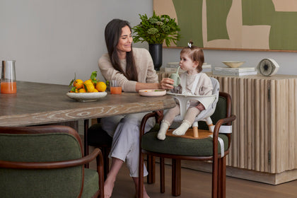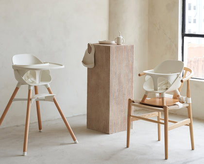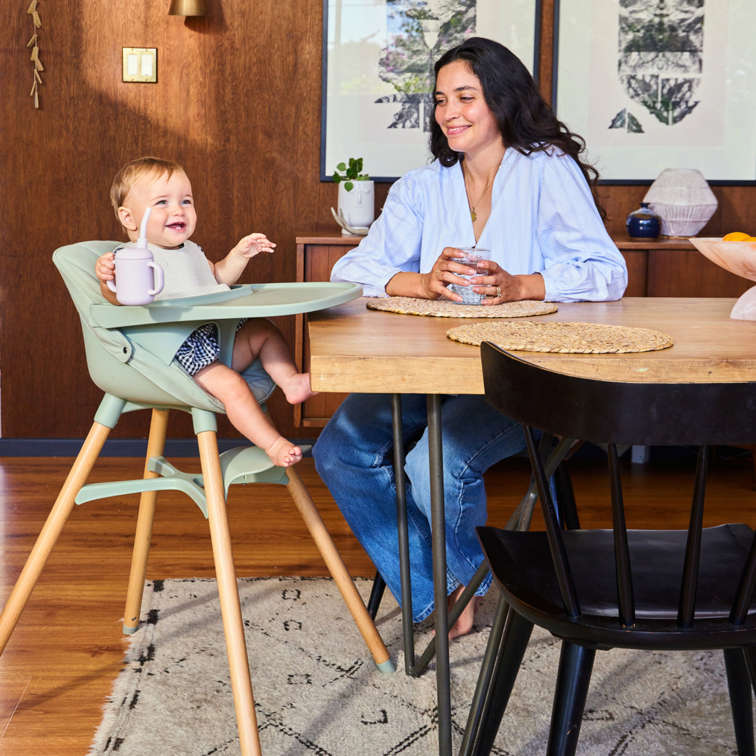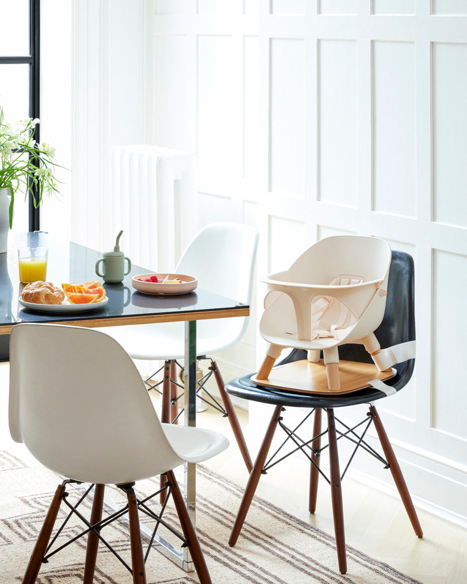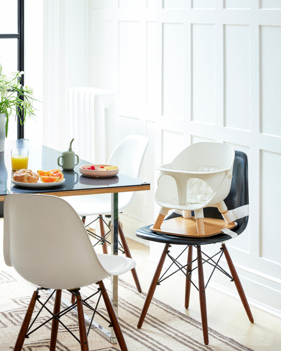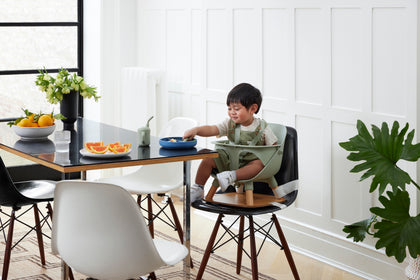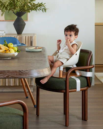 The best seat in any house. The Booster can be safely secured to most adult dining chairs. It’s perfect for small spaces and weekends at the grandparents’ house.