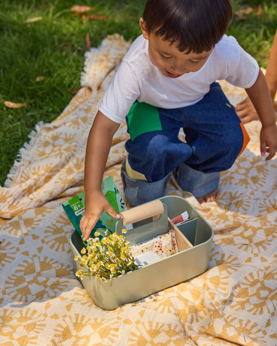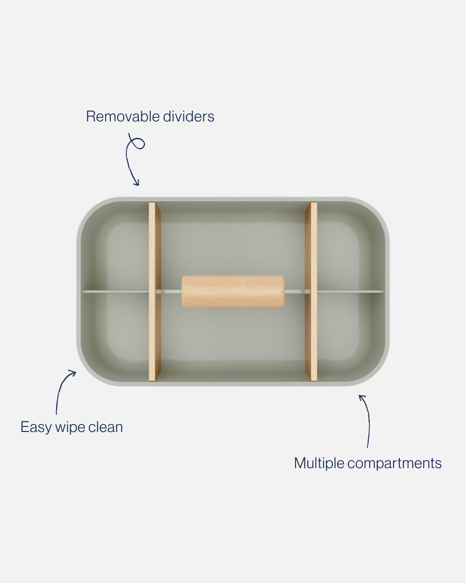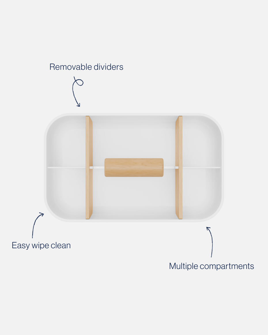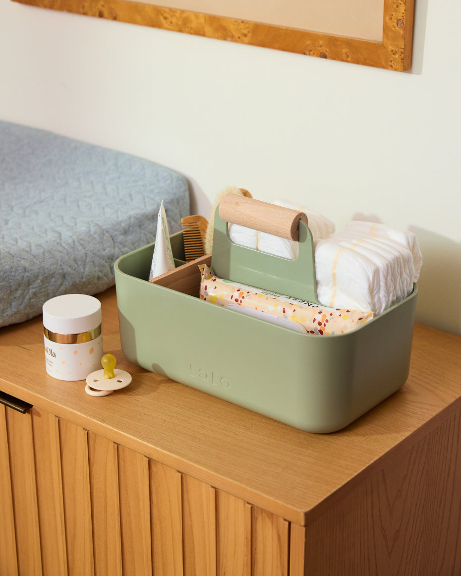 Get (and stay) organized with this chic, multipurpose caddy. The Caddy's modular design features 2 removable dividers giving you the option for 3 different configurations. Whether you're storing craft supplies, snacks, or diapers — we've got you.