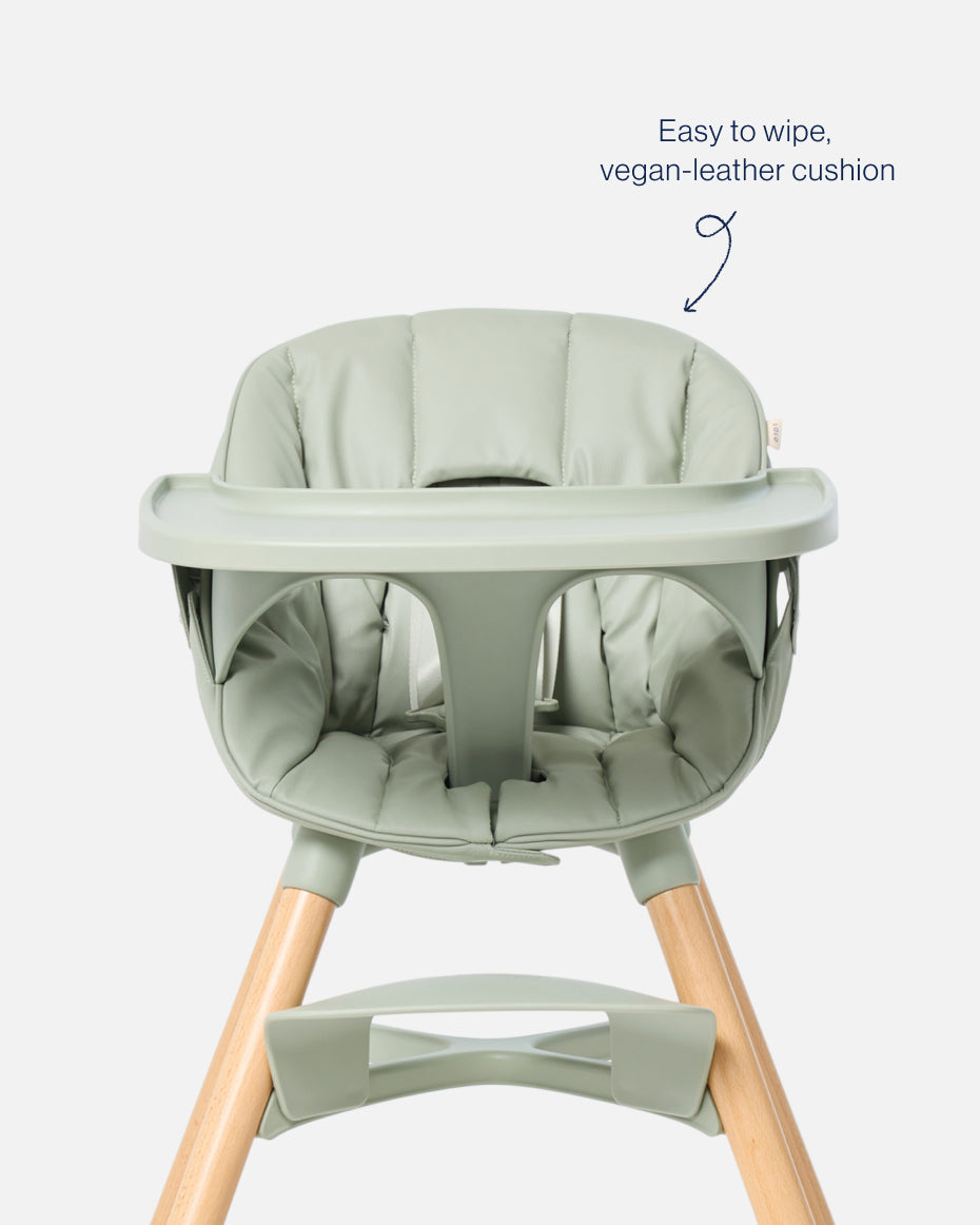 Whether you choose the machine washable cotton or the wipeable vegan leather option, this cushion makes messy mealtimes a breeze.