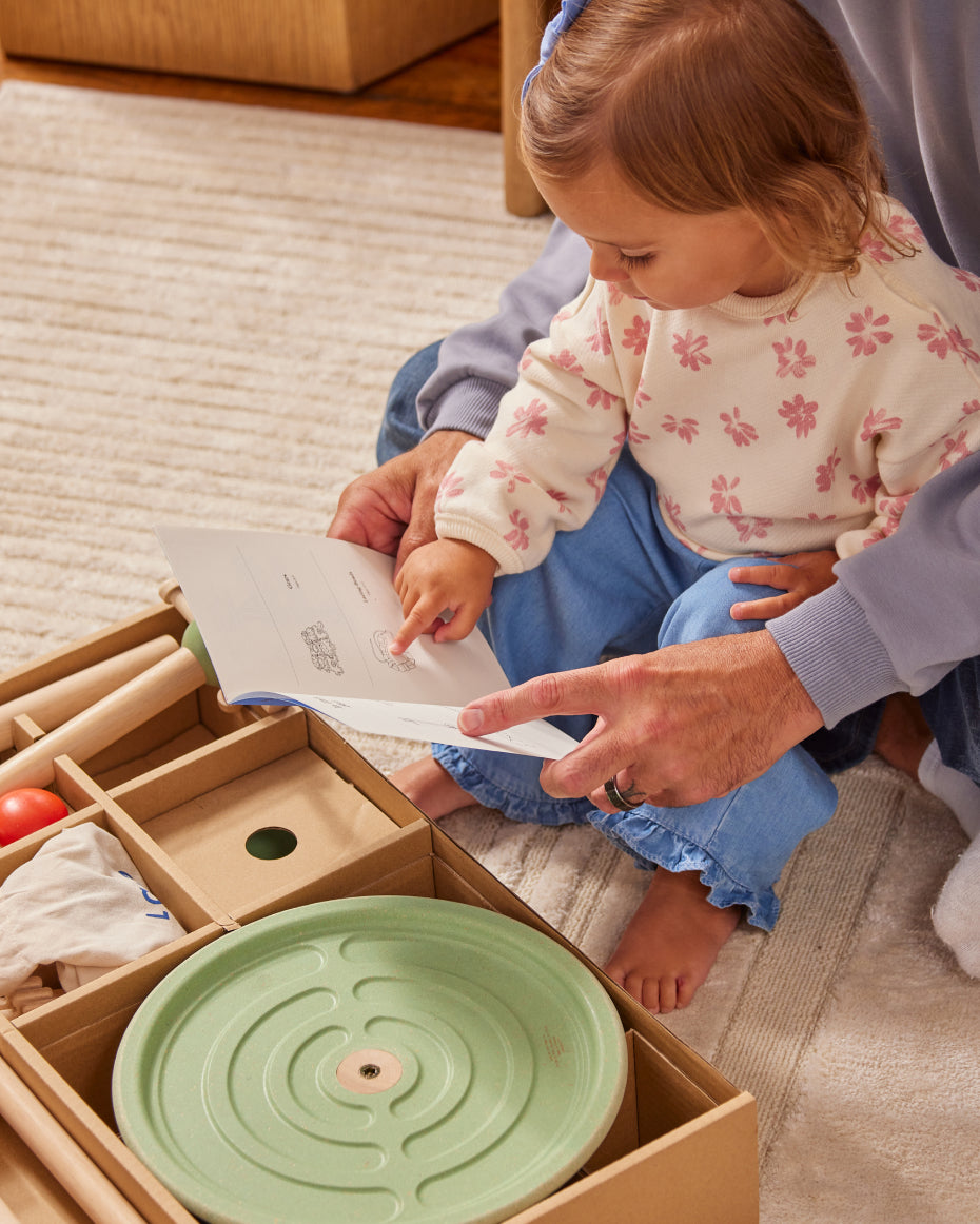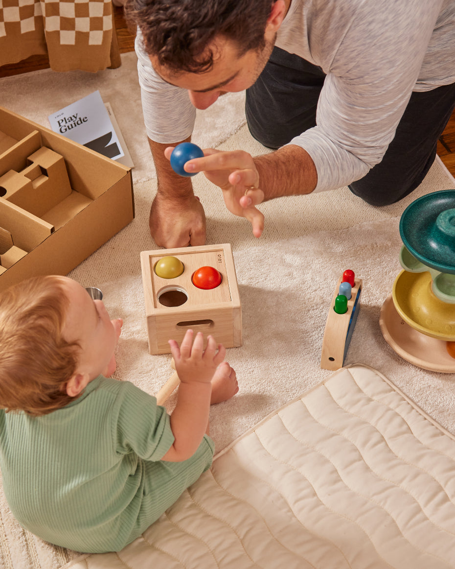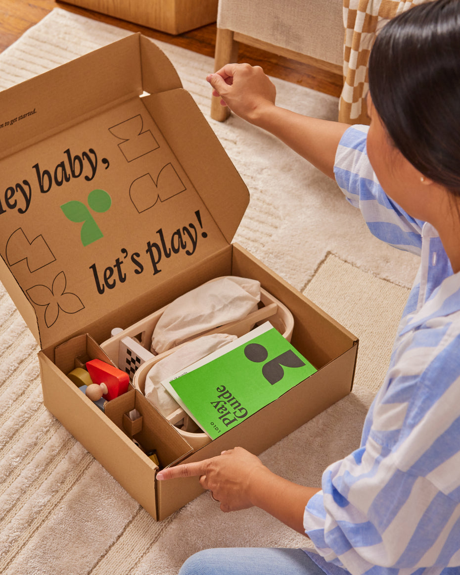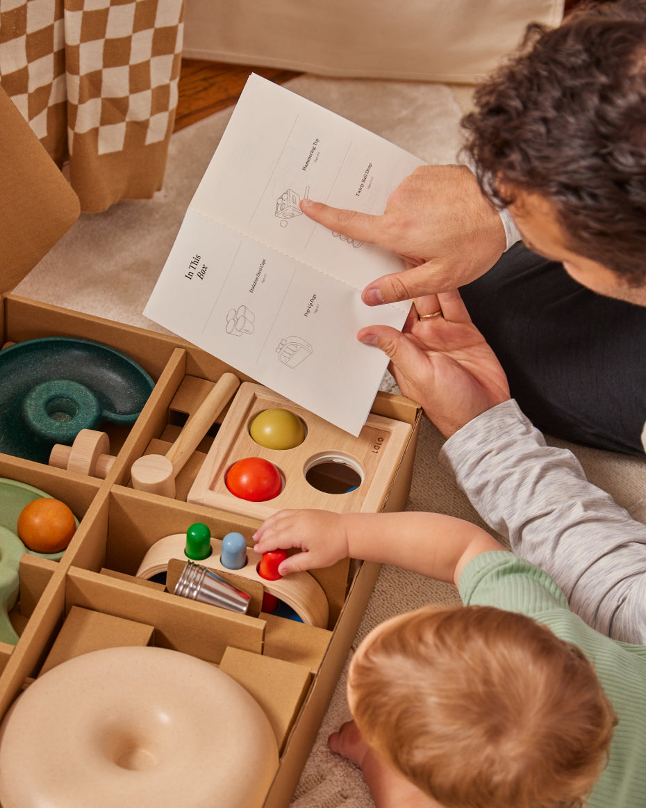Take the guesswork out of parent-led learning with a Play Guide found inside each Play Box. The booklet explores each thoughtfully designed toy, explaining how to deliver hours of meaningful playtime and support your little one with developing new skills.