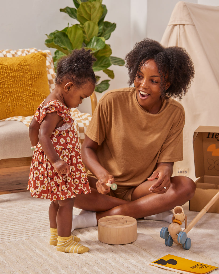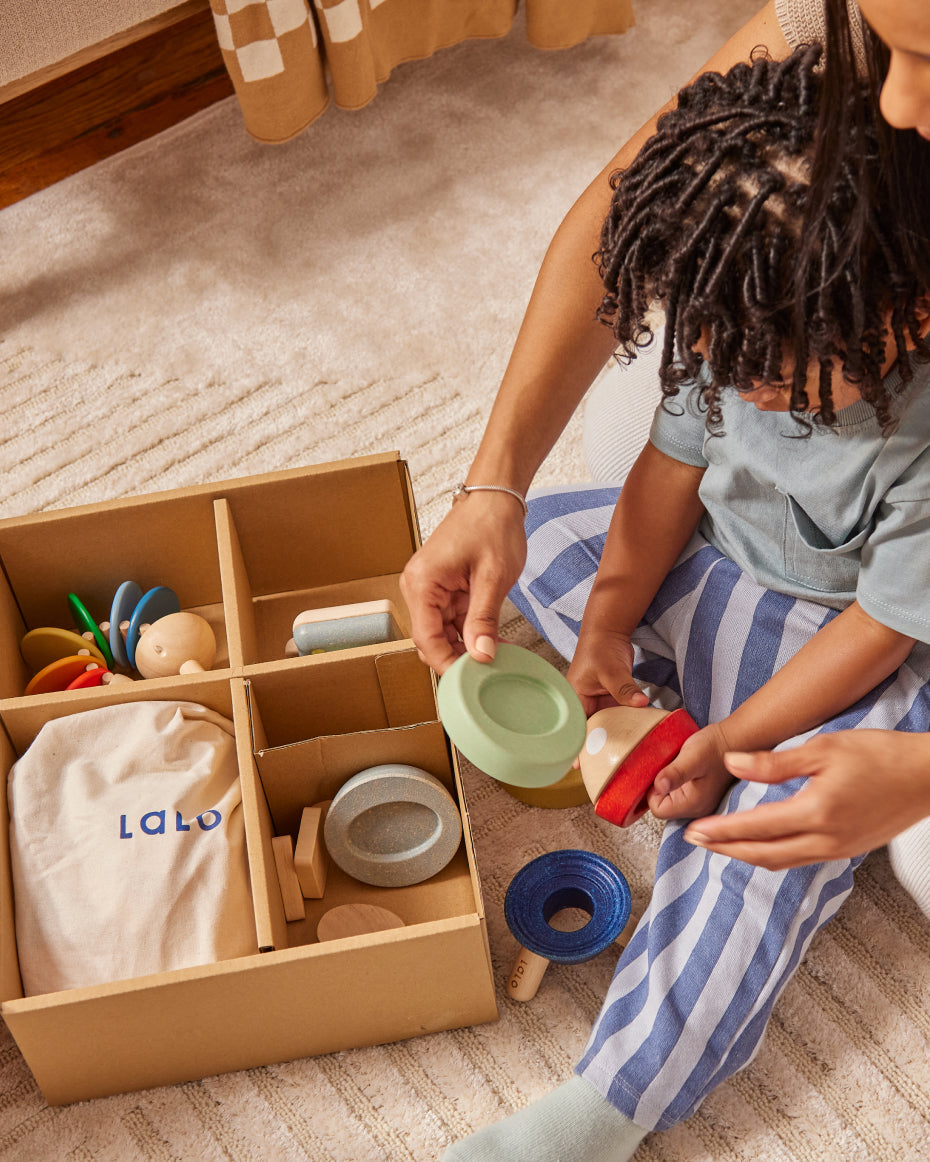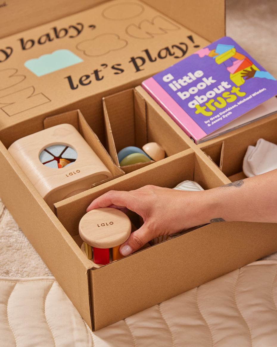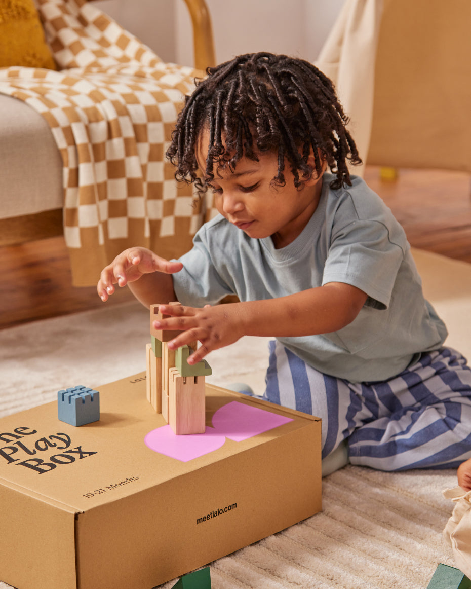 Take the guesswork out of parent-led learning with a Play Guide found inside each Play Box. The booklet explores each thoughtfully designed toy, explaining how to deliver hours of meaningful playtime and support your little one with developing new skills.